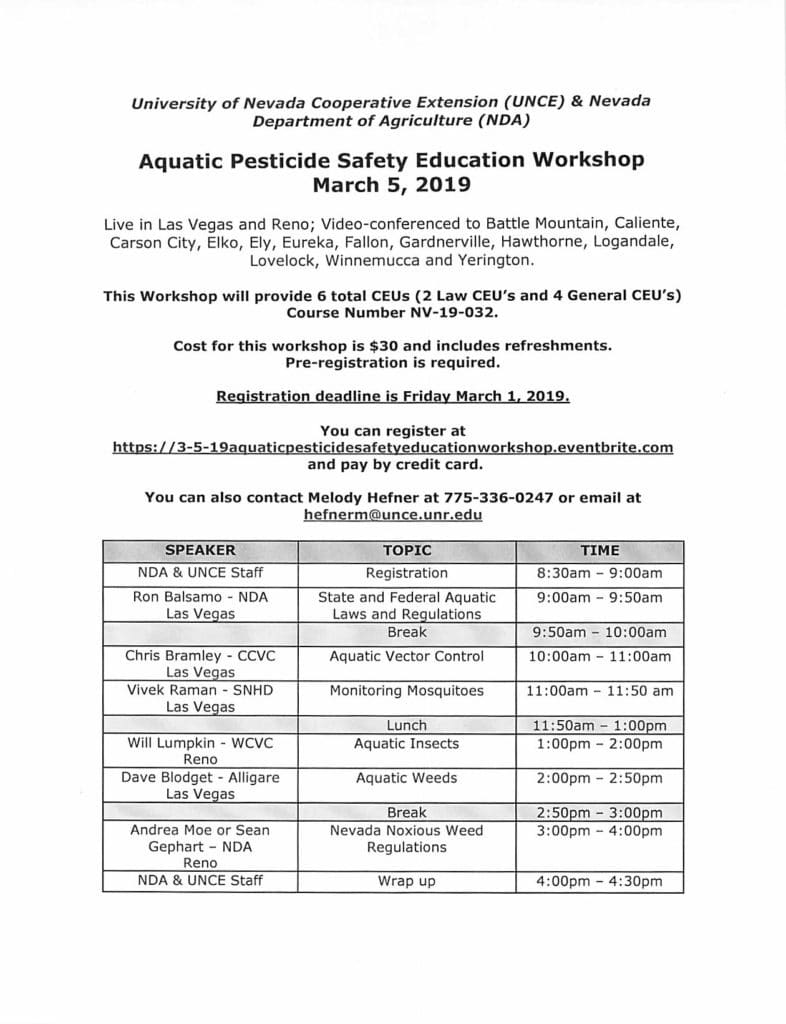 Aquatic, Pesticide Safety Education Workshop March 5, 2019