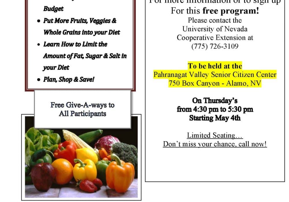 March 7, 2017 By UNCE-Admin Eating Smart * Being Active – Coming Soon to Alamo … [Read more...] about Eating Smart * Being Active – Coming Soon to Alamo